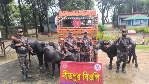 পোরশা সীমান্তে মালিক বিহীন ভারতীয় মহিষ আটক