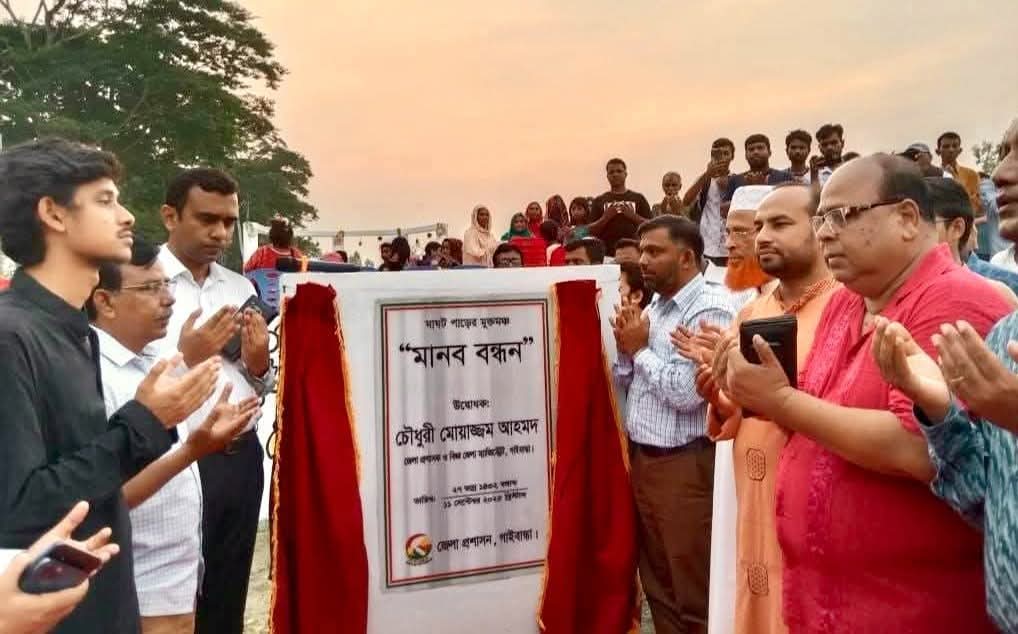 গাইবান্ধা পৌর শহরে ঘাঘট পাড়ের মুক্তমঞ্চ মানববন্ধনের উদ্বোধন