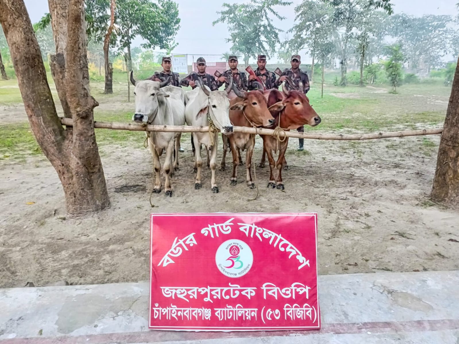 চাঁপাইনবাবগঞ্জ ব্যাটালিয়ান (৫৩ বিজিবি) কর্তৃক পৃথক পৃথক অভিযানে ৮ টি ভারতীয় গরু আটক করেছে। বিজিবি গোপন সূত্রের ভিত্তিতে জানতে পারে যে, চোরাকারবারীরা চোরাচালানের উদ্দেশ্যে ভারত হতে গবাদিপশু নদীতে ভাসিয়ে বাংলাদেশ আনে এবং গবাদিপশু গুলো অন্য স্থানে লুকিয়ে রেখেছে। এপ্রেক্ষিতে(২০ নভেম্বর) আনুমানিক ভোর ৪ঃ৩০ মিনিটের সময়। অত্র ব্যাটালিয়নের অধীনস্থ মনোহরপুর, জহুরপুর ও জহুরপুরটেক বিওপির বিশেষ টহলদল পৃথক পৃথক অভিযান পরিচালনা করে চাঁপাইনবাবগঞ্জ জেলার সদর ও শিবগঞ্জ থানাধীন সূর্যনারায়নপুর ও দুর্লভপুর ইউনিয়নের বিভিন্ন এলাকা হতে ০৮টি ভারতীয় গরু জব্দ করে। জব্দকৃত গরু চাঁপাইনবাবগঞ্জ শুল্ক কার্যালয় জমা করা হয়েছে।