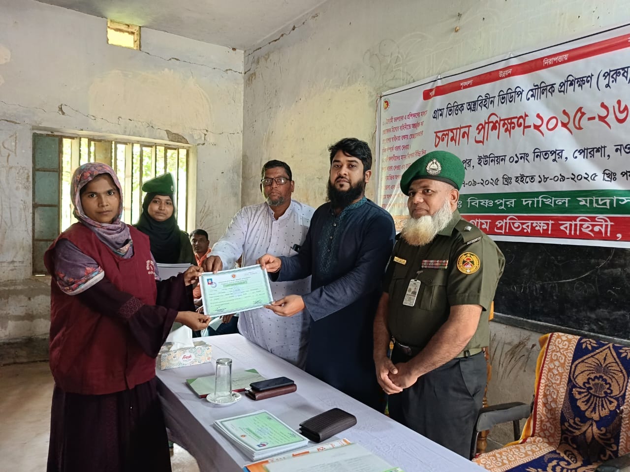 পোরশায় ভিডিপি মৌলিক প্রশিক্ষণের সনদ বিতরণ