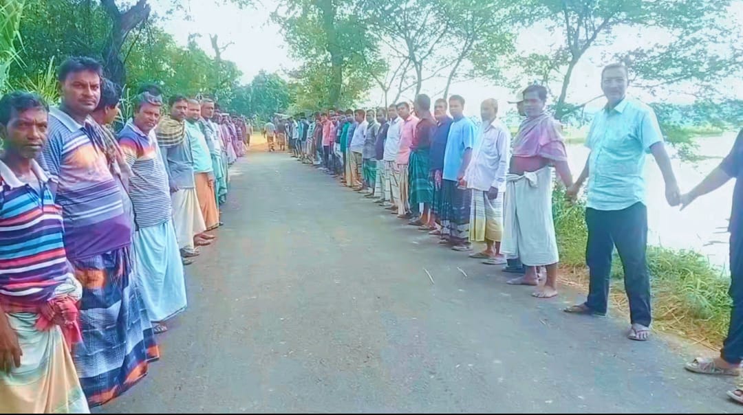 বাগমারায় কোলার বিলের সভাপতি বিরুদ্ধে মানববন্ধন অনুষ্ঠিত
