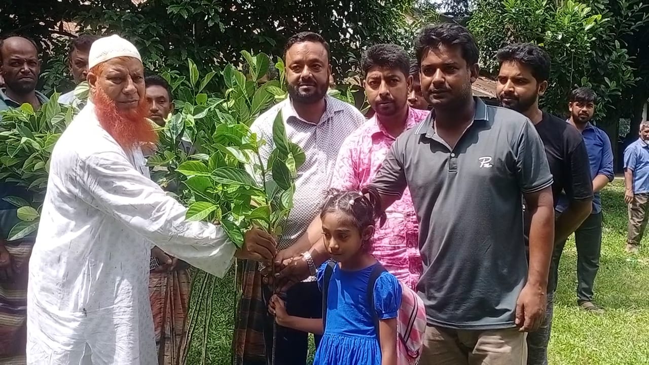 বাগমারার সোনাডাঙ্গায় কৃষক দলের নেতা রনির উদ্যোগে কাঁঠাল গাছের চারা বিতরণ