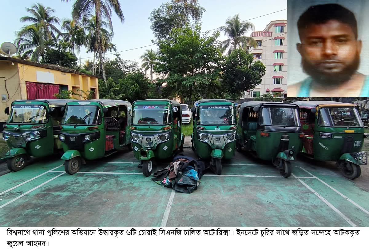 বিশ্বনাথে ৬টি চোরাই সিএনজি চালিত অটোরিক্সা উদ্ধার, আটক ১
