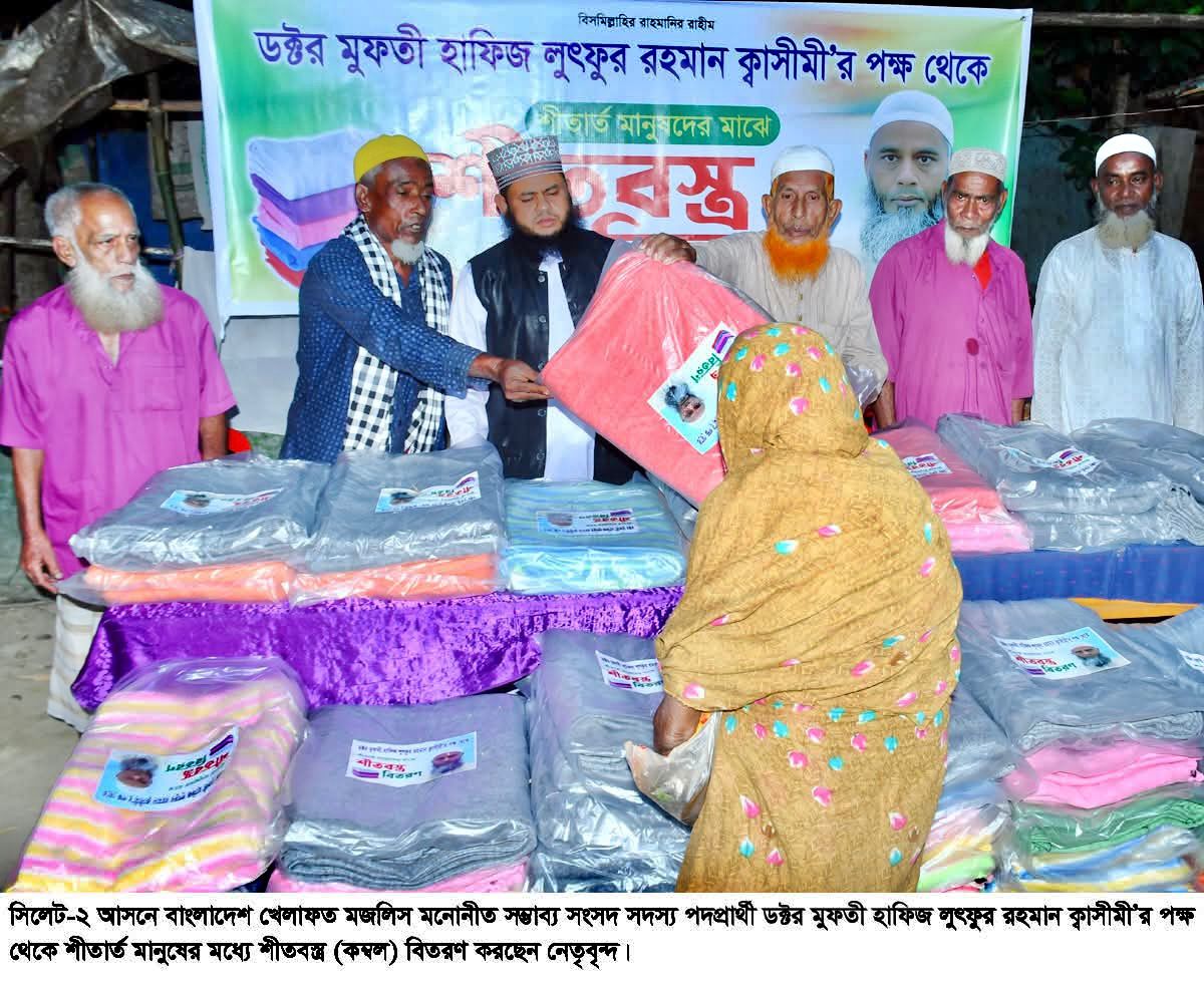 সিলেট-২ আসনে বাংলাদেশ খেলাফত মজলিস মনোনীত সম্ভাব্য সংসদ সদস্য পদপ্রার্থী ডক্টর মুফতী হাফিজ লুৎফুর রহমান ক্বাসীমী’র পক্ষ থেকে শীতার্ত মানুষের মধ্যে শীতবস্ত্র (কম্বল) বিতরণ করা হয়েছে।