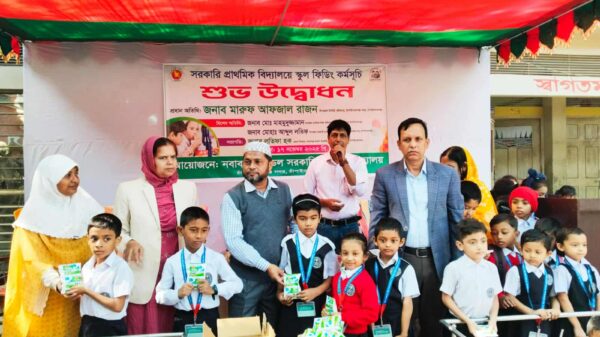নবাবগঞ্জ মডেল সরকারি প্রাথমিক বিদ্যালয়ে স্কুল ফিডিং কর্মসূচি উদ্বোধন