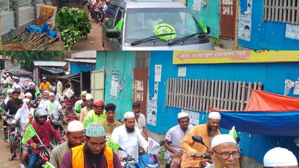 আব্দুল্লাহ আল মামুন যশোর যশোর ৫ মণিরামপুর আসনের ইসলামী আন্দোলন বাংলাদেশ পীর সাহেব চরমোনাই মনোনীত হাতপাখার এমপি প্রার্থী মাষ্টার জয়নাল আবেদীন টিপুর মটরসাইকেল শোডাউন অনুষ্ঠিত হয়েছে। শনিবার ২০ সেপ্টেম্বর সকালে