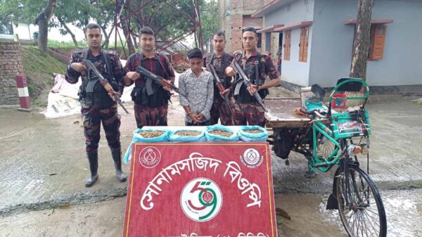 মাহিদুল ইসলাম ফরহাদ চাঁপাইনবাবগঞ্জ জেলা প্রতিনিধি সীমান্তে মাদক ও চোরাচালান প্রতিরোধে মহানন্দা ব্যাটালিয়ন (৫৯ বিজিবি)-এর বিশেষ টহল অব্যাহত রয়েছে। এরই অংশ হিসেবে সোমবার (১৬ সেপ্টেম্বর ২০২৫) সকাল ৬টা ১৫ মিনিটে