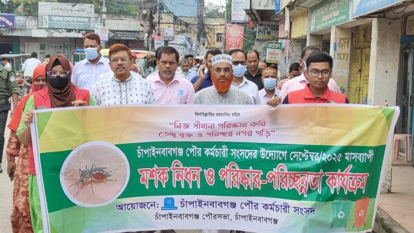 মাহিদুল ইসলাম ফরহাদ চাঁপাইনবাবগঞ্জ জেলা প্রতিনিধি চাঁপাইনবাবগঞ্জ পৌরসভায় পৌর কর্মচারী সংসদের উদ্যোগে ১৭ই সেপ্টেম্বর রোজ মঙ্গলবার সকাল ১০ ঘটিকায় পৌর চত্তর থেকে মশক নিধন ও পরিষ্কার-পরিচ্ছন্নতা কার্যক্রম বাস্তবায়নে পৌরসভার প্রধান