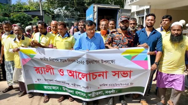 পত্নীতলা( নওগাঁ) প্রতিনিধি ,”মানসম্মত হেলমেট ও নিরাপদ গতি,কমবে জীবন ও সম্পদের ক্ষতি” এ প্রতিপাদ্য নিয়ে নওগাঁর পত্নীতলায় জাতীয় নিরাপদ সড়ক দিবসে র্যালি ও আলোচনা সভা অনুষ্ঠিত হয়েছে। বুধবার (২২ অক্টোবর)