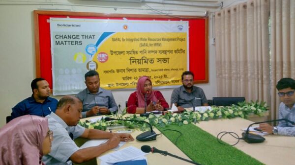 আব্দুল্লাহ আল মামুন যশোর মণিরামপুরে সেফাল ফর ইন্টাগ্রেটেড ওয়াটার রিসোর্স ম্যানেজমেন্ট প্রজেক্ট (আই,ডব্লিউ,আরএম) এর তত্বাবধানে উপজেলা সমন্বিত পানি সম্পদ ব্যবস্থাপনা কমিটির নিয়মিত সভা অনুষ্ঠিত হয়েছে। সোলিডারিয়েড নেটওয়ার্ক এশিয়া ও জাগরণী