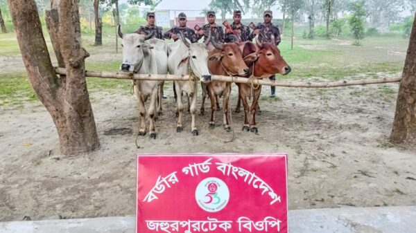 মাহিদুল ইসলাম ফরহাদ চাঁপাইনবাবগঞ্জ জেলা প্রতিনিধি চাঁপাইনবাবগঞ্জ ব্যাটালিয়ান (৫৩ বিজিবি) কর্তৃক পৃথক পৃথক অভিযানে ৮ টি ভারতীয় গরু আটক করেছে। বিজিবি গোপন সূত্রের ভিত্তিতে জানতে পারে যে, চোরাকারবারীরা চোরাচালানের উদ্দেশ্যে